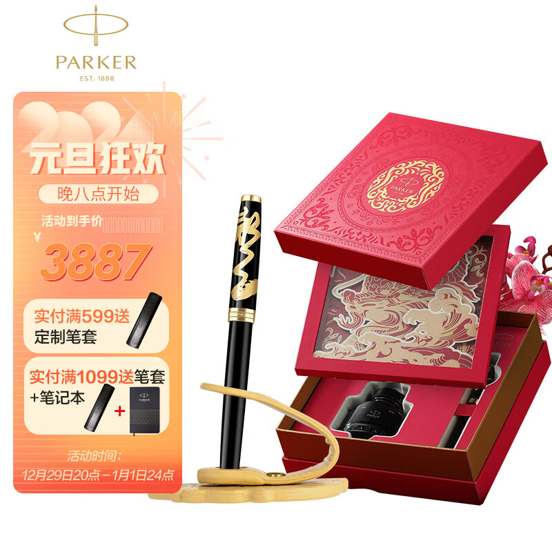 派克(PARKER)高端钢笔签字笔 男女生日练字书法文具新年礼物 卓尔苍龙黑墨水笔+龙年系列御龙礼盒价格:4837.00元!