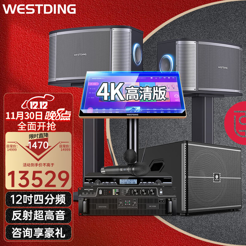 威斯汀家庭KTV音响套装点歌机一体唱歌全套设备家用影院卡拉ok户外重低音炮双重大包围四分频天籁-T08价格:14999.00元!