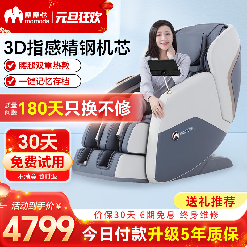 摩摩哒(momoda)家用3D精钢机芯按摩椅全身太空舱老人全自动多功能SL导轨零重力智能豪华电动沙发颈椎椅送父母礼物 M630Pro灰【小巧便捷】【 入门优选】价格:4799.00元!