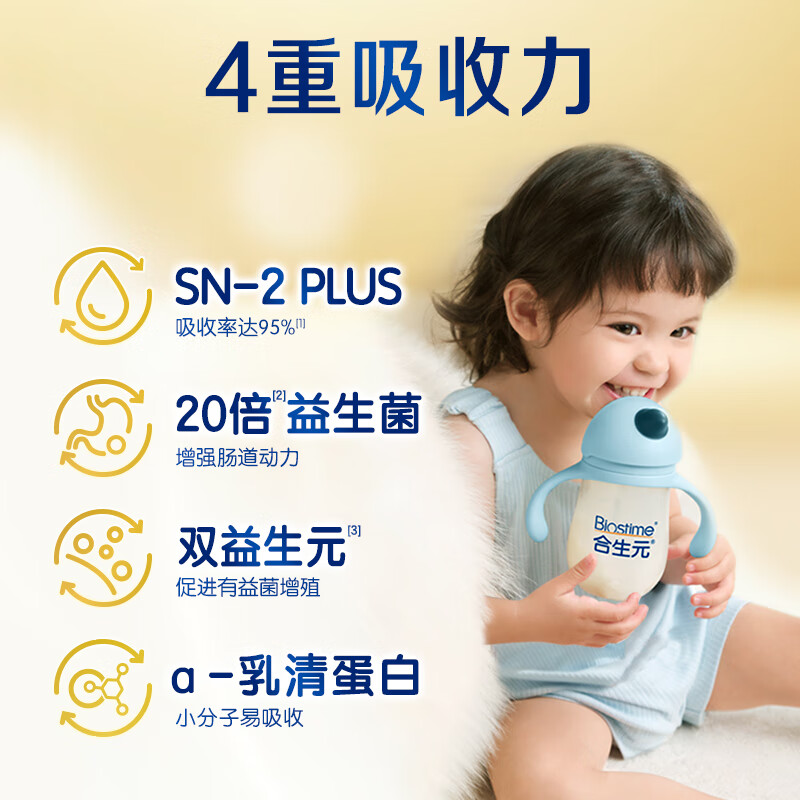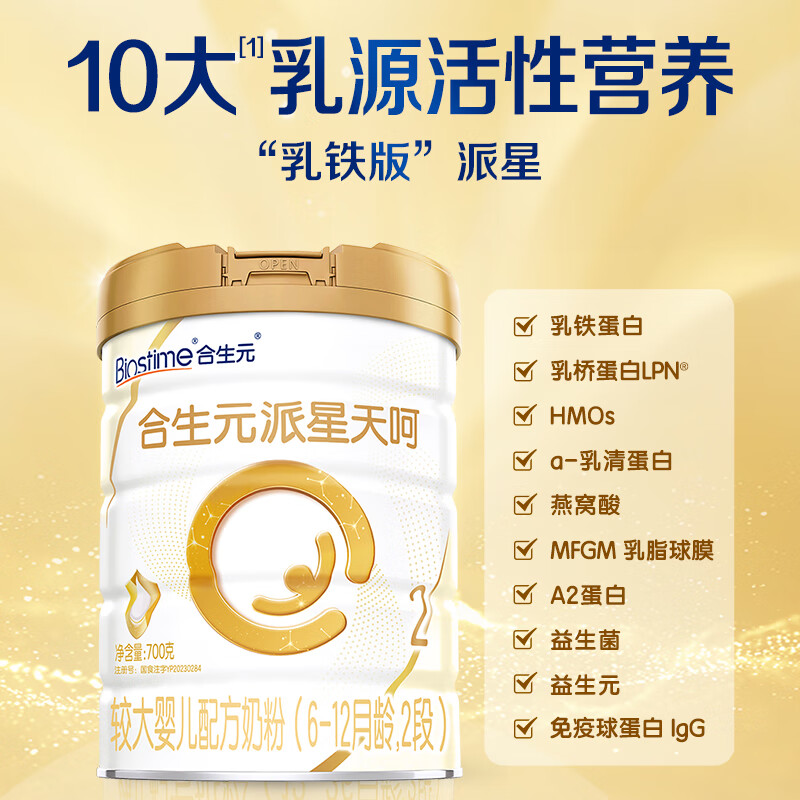 合生元(BIOSTIME)派星天呵较大婴儿配方奶粉2段(6-12个月)700克*6罐新国标乳铁蛋白价格:1992.00元!