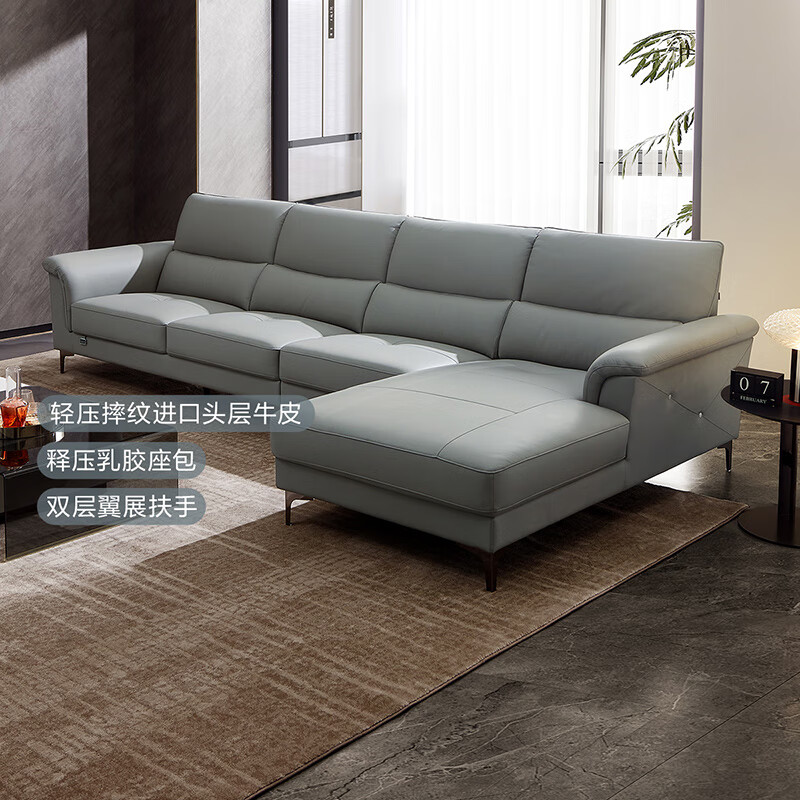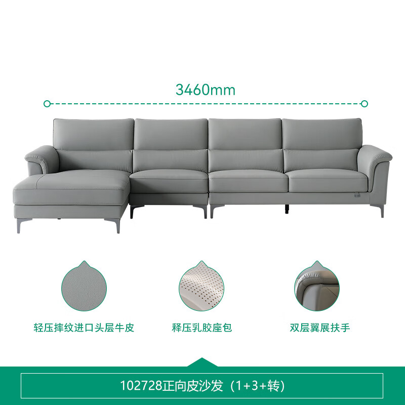 全友家居 皮沙发简约头层进口牛皮双层扶手乳胶座包客厅家具102728价格:8140.04元!