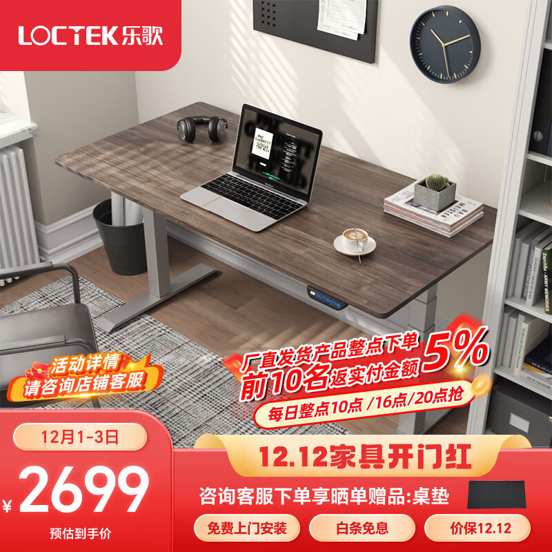 乐歌电动升降桌电脑桌站立办公学习桌写字桌E5-N/1.4m灰胡桃木色套装价格:2699.00元!