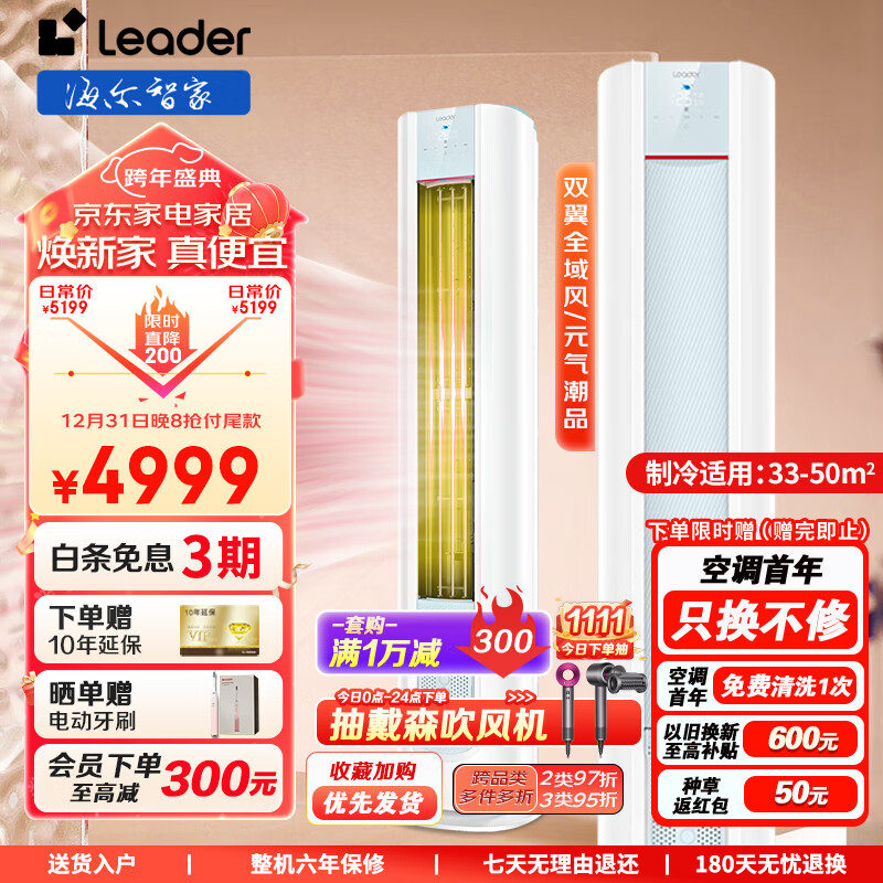 统帅(Leader)空调 海尔空调出品 3匹 元气一级能效客厅空调 立柜式空调 急速降温 一键智控KFR-72LW/03LKB81TU1价格:4998.00元!