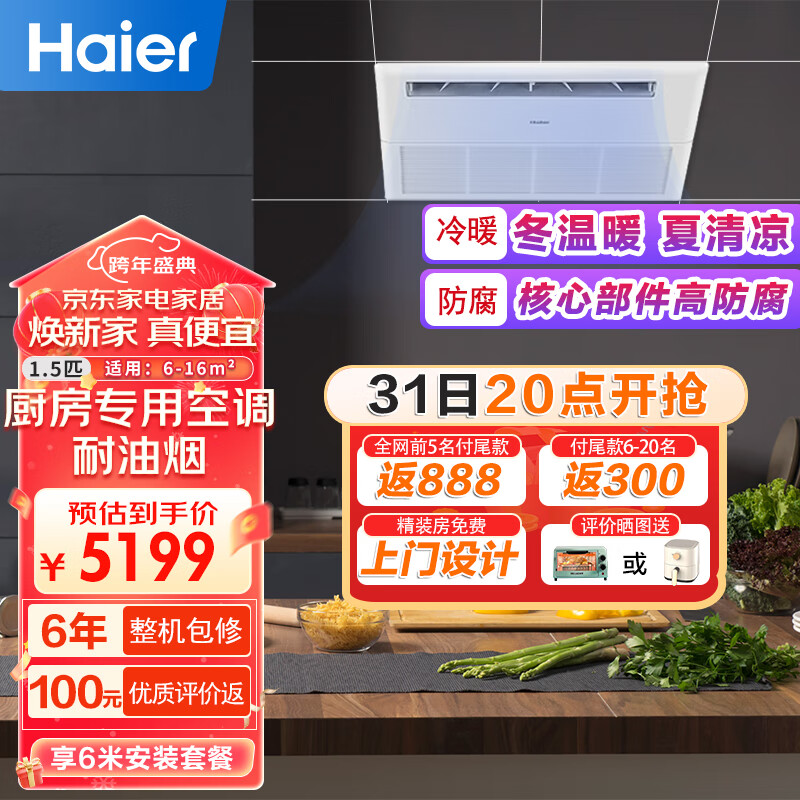 海尔(Haier)厨房空调 中央空调风管机一拖一1.5匹全直流变频家用嵌入式集成冷暖KFR-32NW/01FAA22S价格:5138.00元!