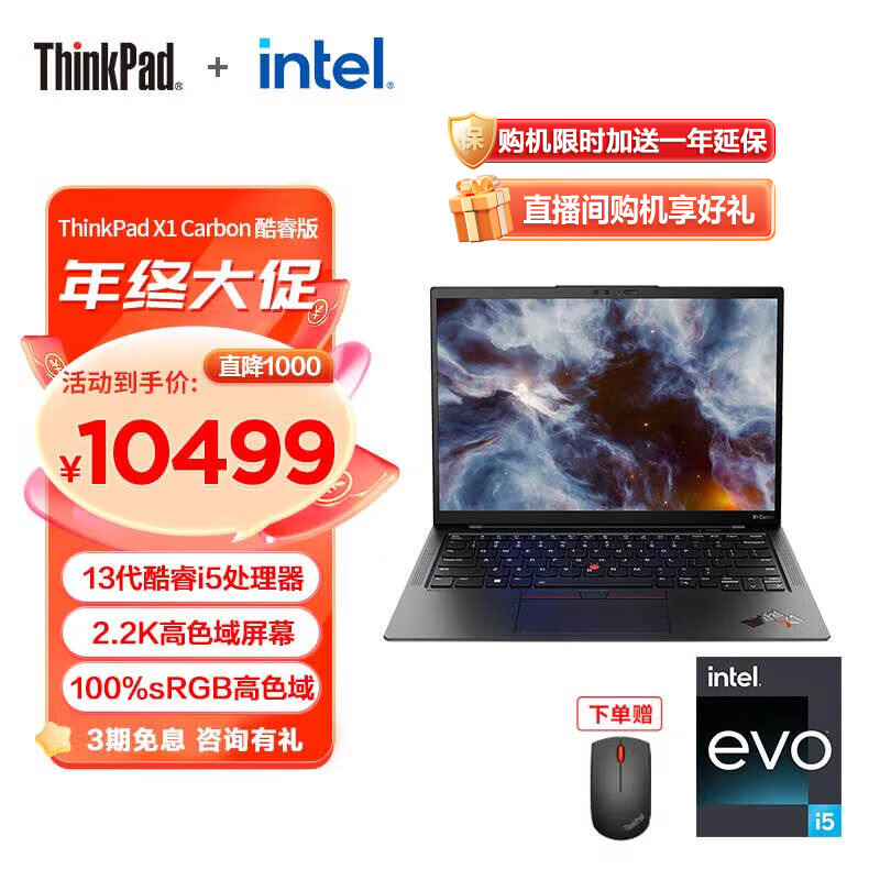 ThinkPad X1 Carbon 联想 14英寸高性能商务轻薄笔记本电脑13代英特尔酷睿处理器LTE全时互联 13代i5 16G 512G 2.2K 38CD价格:10499.00元!