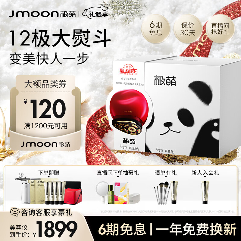 极萌Jmoon大熨斗12极射频美容仪生日礼物女家用面部脸部眼部淡纹嫩肤【熊猫礼盒款】价格:4999.00元!
