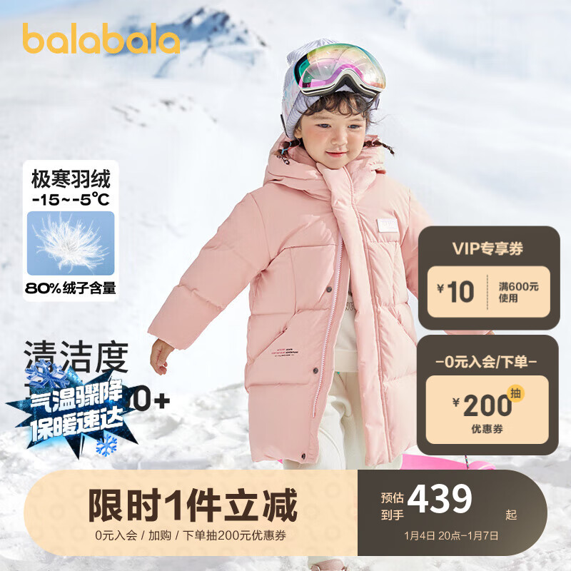 巴拉巴拉儿童羽绒服大童2023款冬季保暖男女童小童长款连帽外套极寒价格:539.00元!