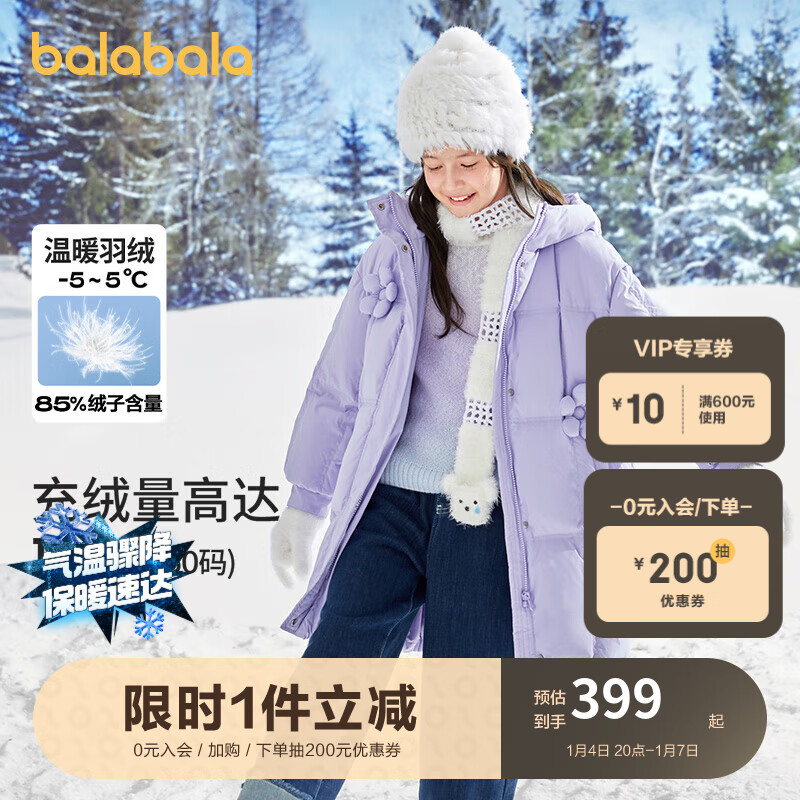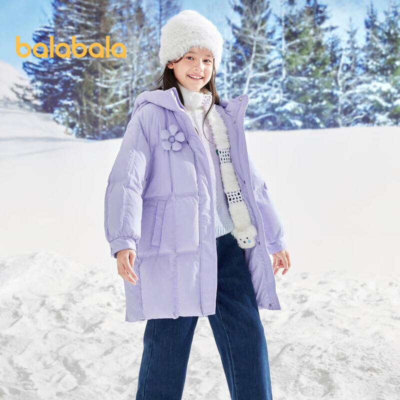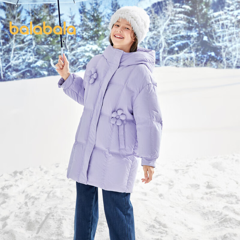 巴拉巴拉儿童长款羽绒服2023冬季童装中大童保暖女童外套花朵价格:499.00元!