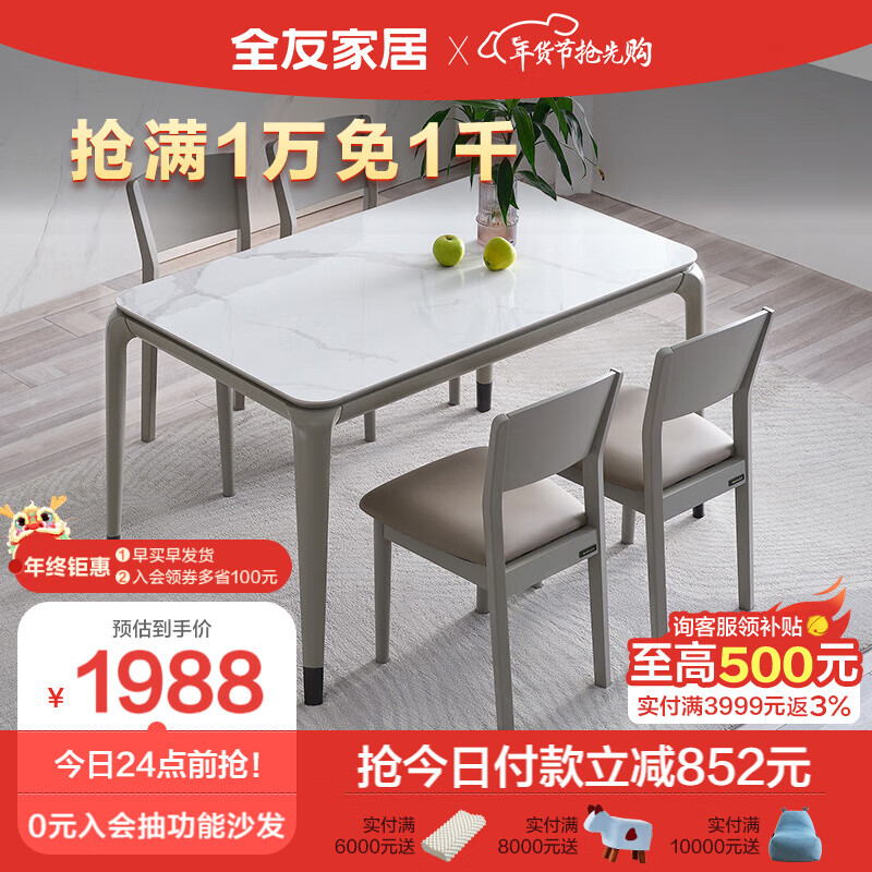 全友家居 餐桌现代简约岩板餐桌椅组合亮光台面大户型餐厅桌子DW1121价格:2840.00元!