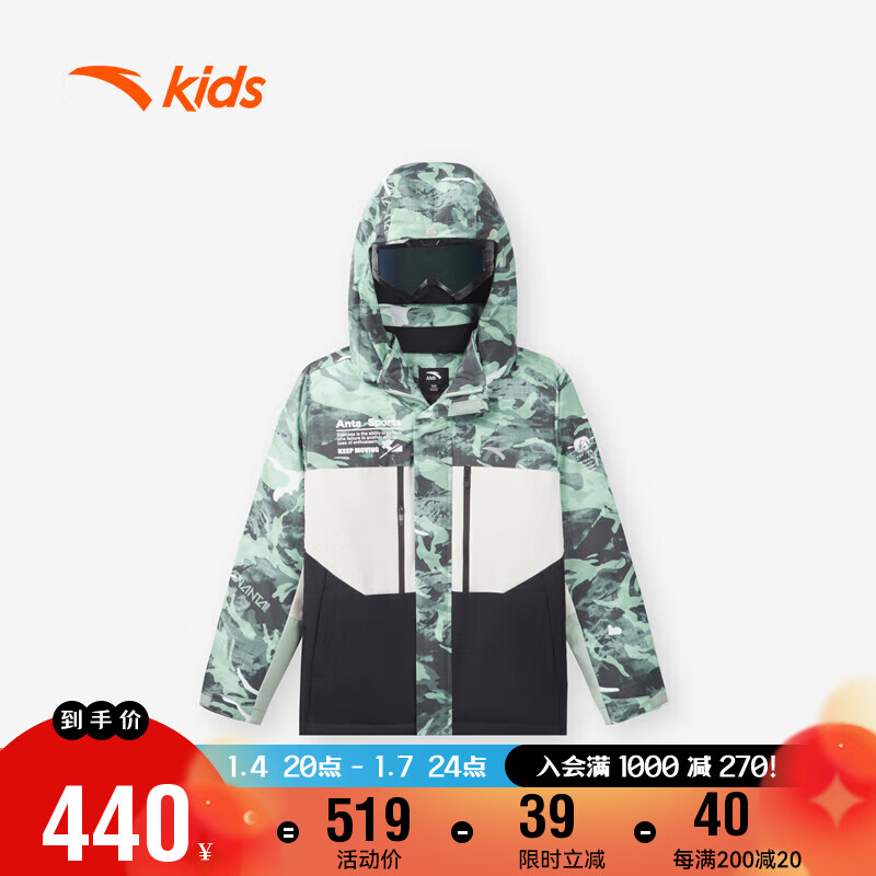 安踏儿童羽绒服男大童冬季加绒保暖热返滑雪眼镜款羽绒外套A352346906价格:519.00元!