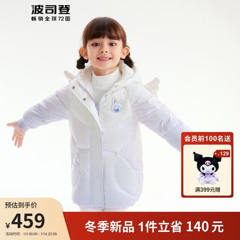 波司登2023冬儿童羽绒服女童中长款萌趣小翅膀90绒加厚连帽T30143912DS价格:599.00元!