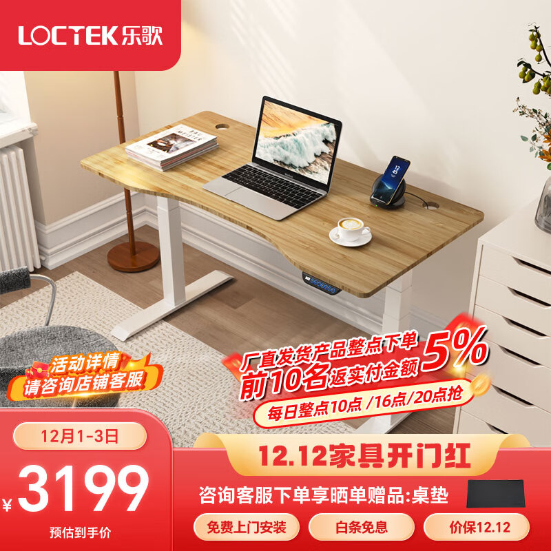乐歌电动升降桌电脑桌站立办公学习桌写字桌书桌 E5-N/1.4m竹板套装价格:3199.00元!