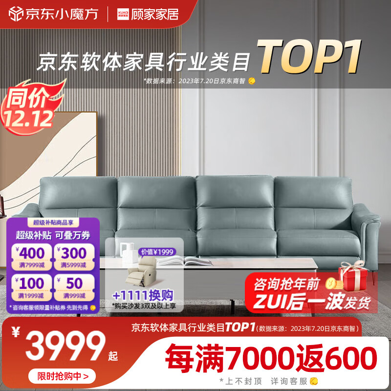 顾家家居布沙发皮感科技布沙发客厅沙发3016灰四人位价格:3999.00元!