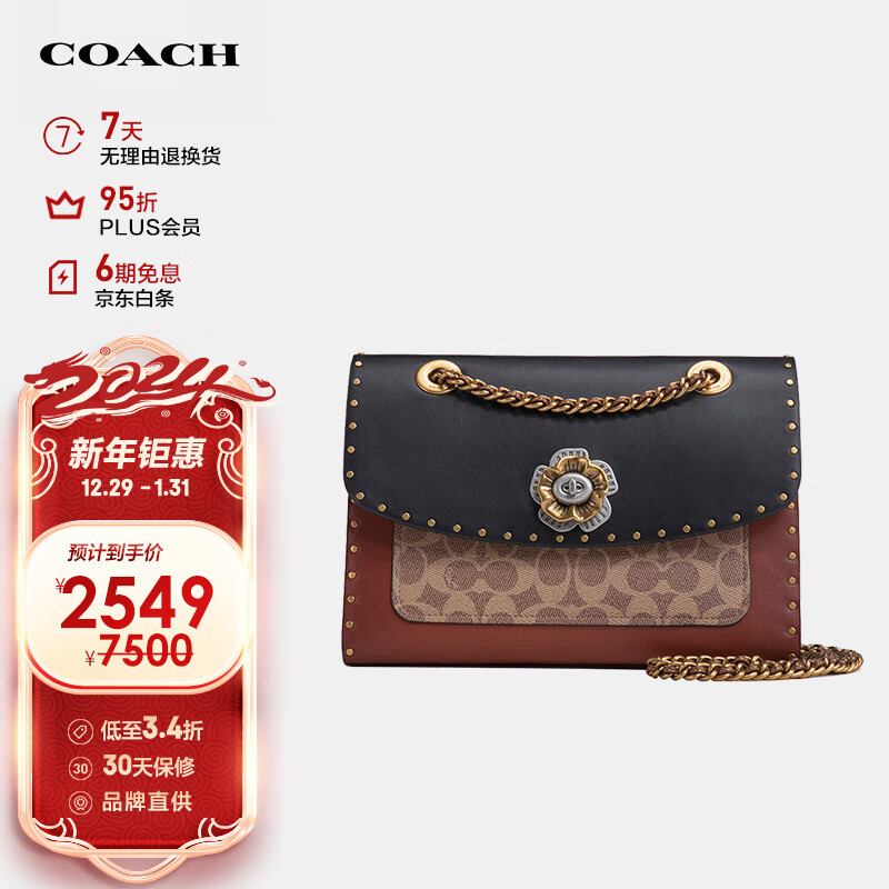 蔻驰(COACH)女士专柜款PARKER山茶花中号单肩斜挎包链条包拼色C4659B4M2价格:2549.00元!