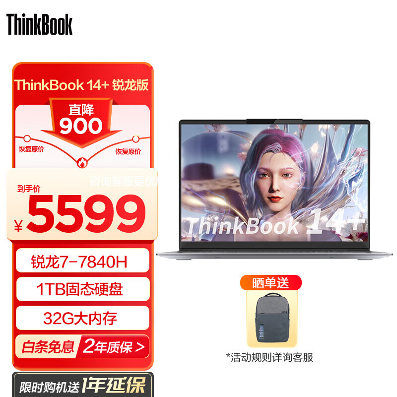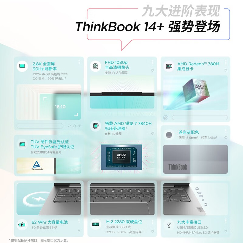 ThinkPad 联想ThinkBook 14+ 锐龙版标压 轻薄商务办公笔记本电脑 2023新品 R7-7840H 32G 1T 集显0GCD价格:6499.00元!