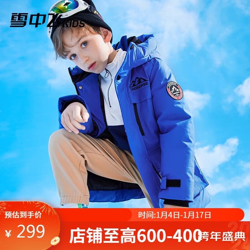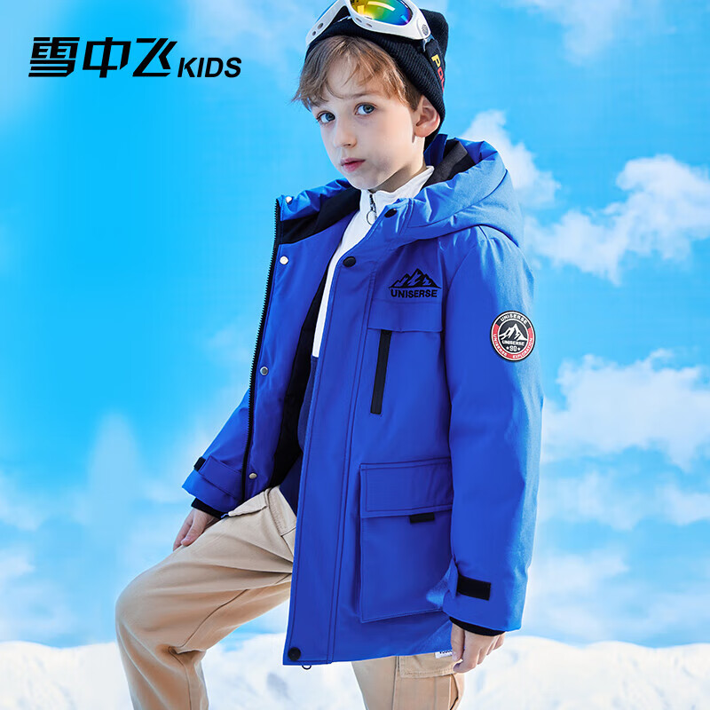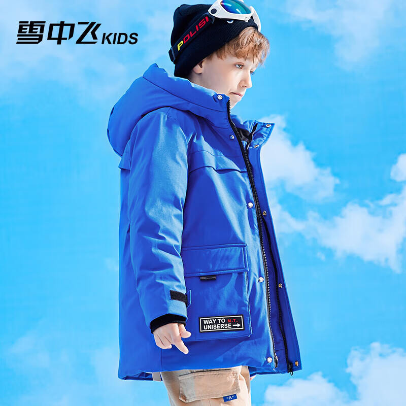 雪中飞【蓄热】儿童羽绒服冬男女中大童中长款工装羽绒服蓝色120cm价格:599.00元!