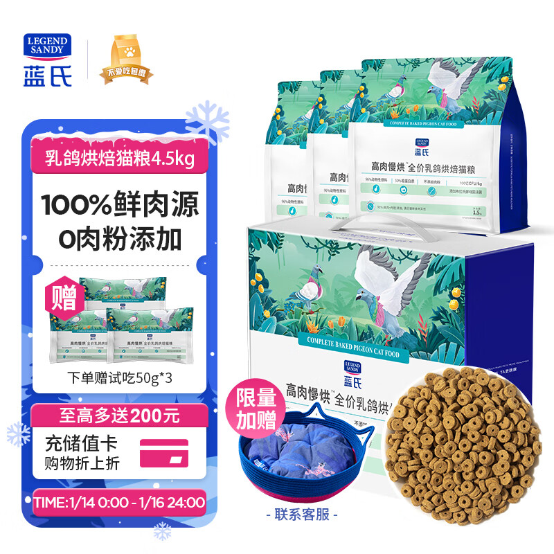 LEGENDSANDY蓝氏 低温烘焙猫粮成猫幼猫全价鲜肉粮 猎鸟乳鸽盒装4.5kg价格:409.00元!