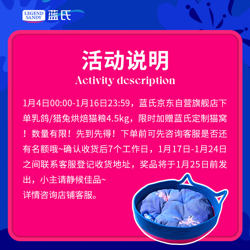 LEGENDSANDY烘焙猫粮4.5kg配置参数: