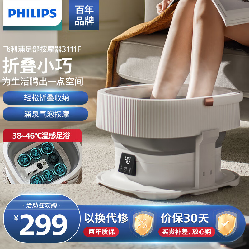 飞利浦(PHILIPS)泡脚桶可折叠足浴盆加热按摩洗脚盆 加长按摩轮智能控温足疗盆 家用送父母朋友节日礼物3111F白色价格:598.00元!
