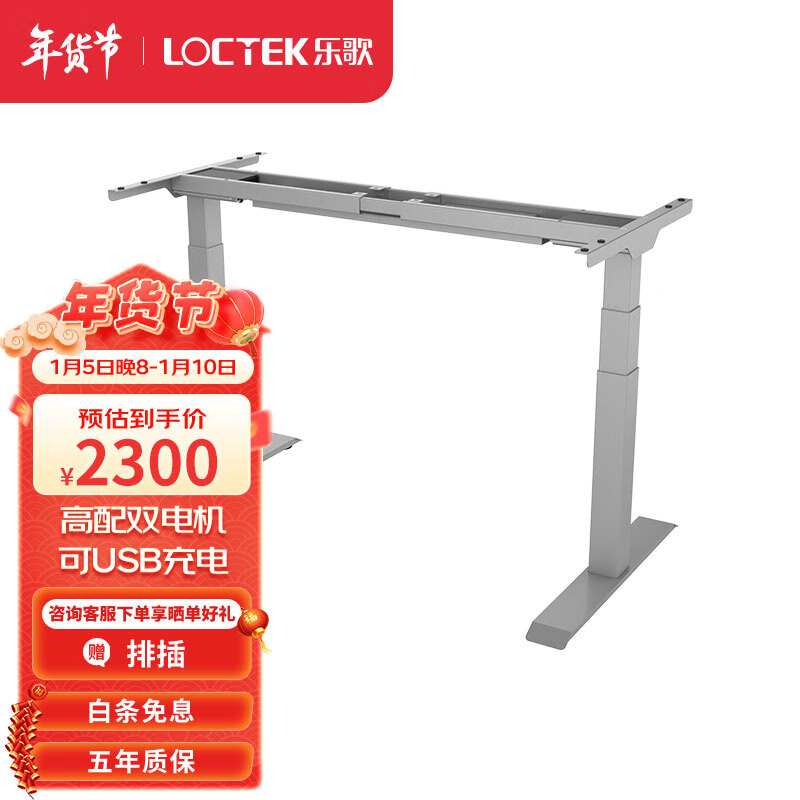 乐歌电动升降桌电脑桌站立办公学习桌家用写字书桌 E5-N银灰桌腿价格:2860.00元!