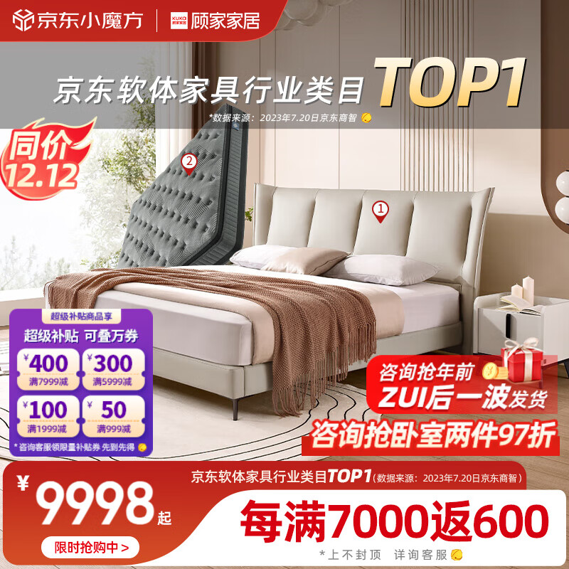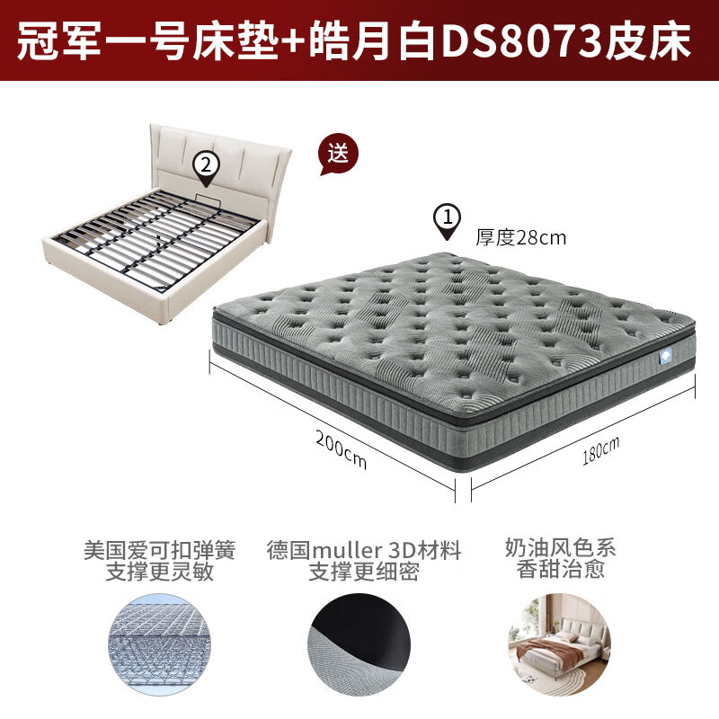 顾家家居(KUKA)席梦思床垫弹簧床垫M1082夺冠1号垫+【皓月白】8073皮床 1.8米价格:9998.00元!