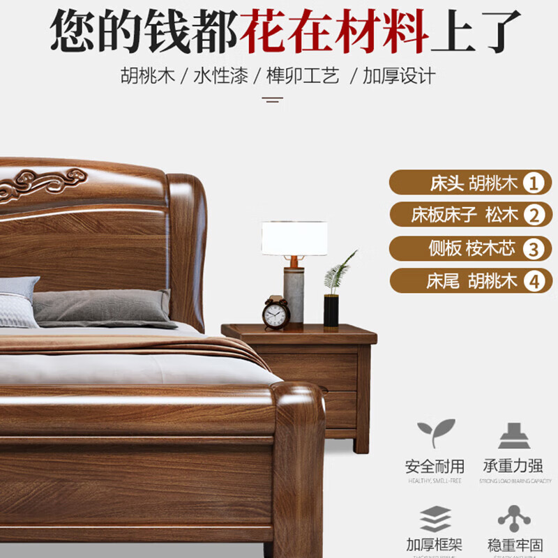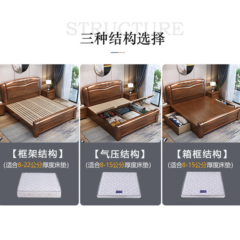 优卡吉床胡桃木新中式主卧双人床储物床MJ-6696# 1.8米框架床+床垫+柜*1价格:3099.00元!