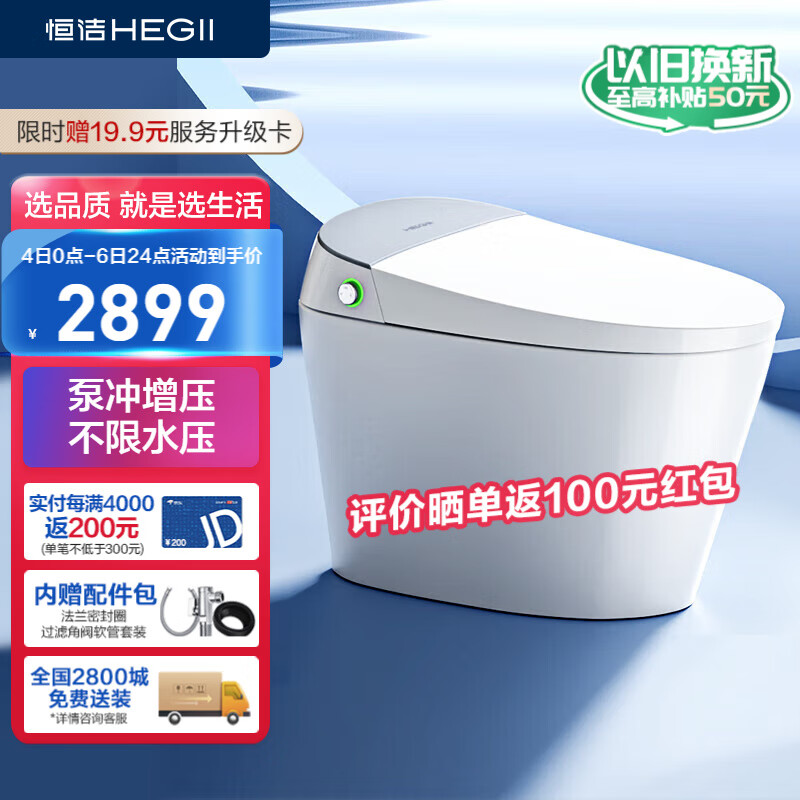 恒洁(HEGII)智能马桶H33 内置水箱不限水压抗菌智能坐便器HCE865A01-400mm价格:3299.00元!
