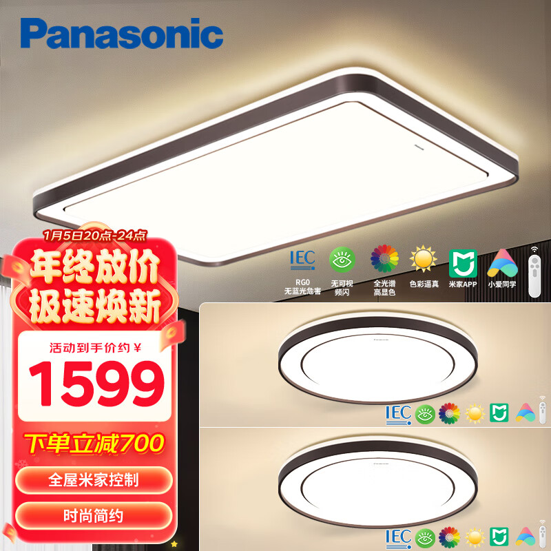 松下(Panasonic)吸顶灯米家智能控制客厅灯全光谱灯具 两室一厅A价格:2299.00元!