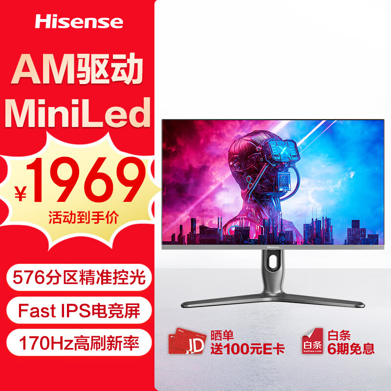 海信27英寸MiniLED 576分区 IPS 170Hz HDR600 1ms响应 2K 旋转升降 电竞办公电脑显示器显示屏27G7H价格:1969.00元!