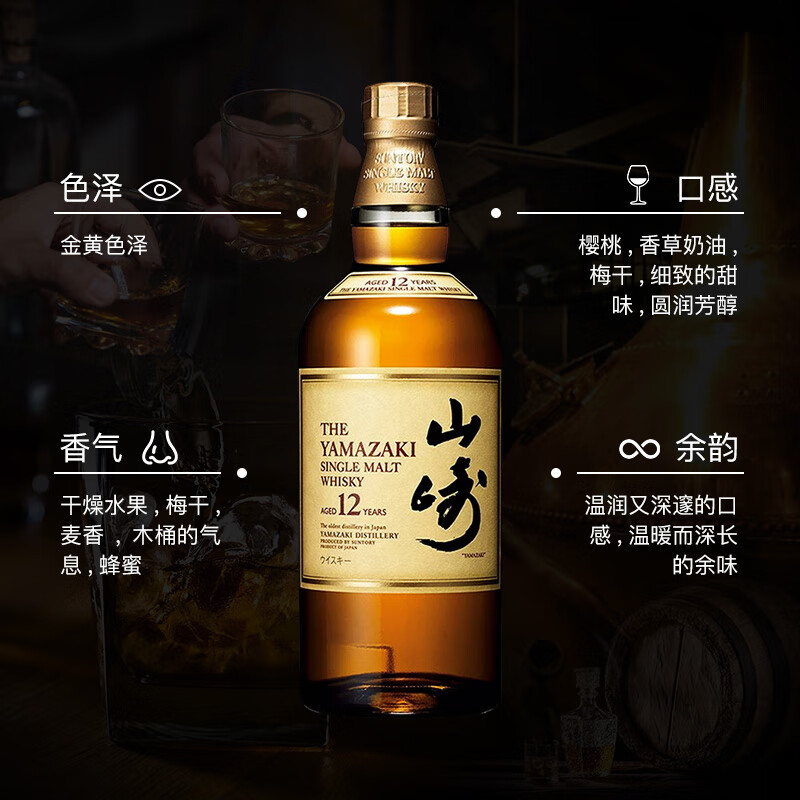 山崎(Yamazaki)12年 单一麦芽威士忌 700ml 三得利 日本原装进口洋酒价格:1659.00元!