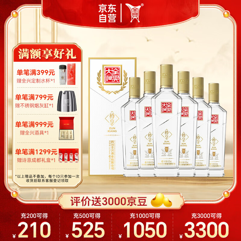 全兴 大曲 樽享 浓香型白酒52度 500ml*6瓶 整箱装 过年送礼价格:1472.00元!