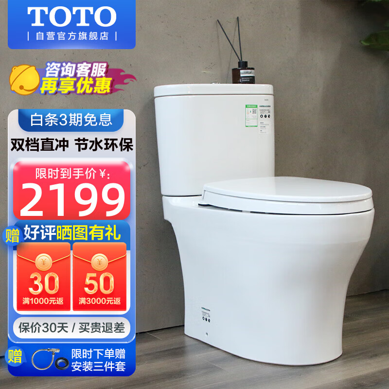 TOTO冲落式马桶智洁无棱内壁直冲冲洗节水全包家用坐便器CW802(04-B)价格:2519.00元!
