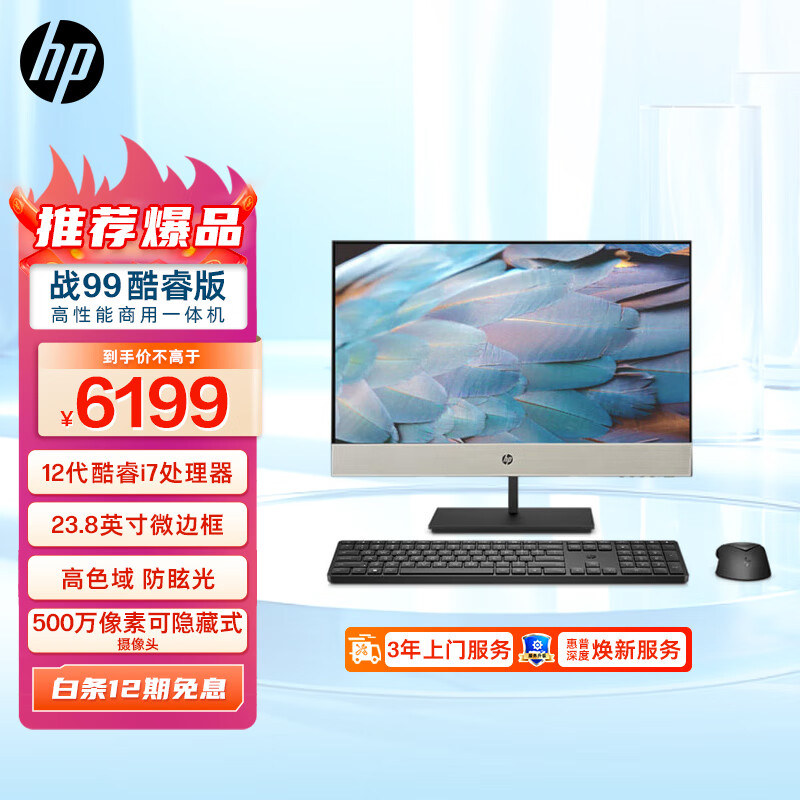 惠普(HP)战99 微边框商用一体机台式电脑23.8英寸(12代i7-12700T 16G 512GSSD WiFi蓝牙 Win11 Office)价格:6199.00元!