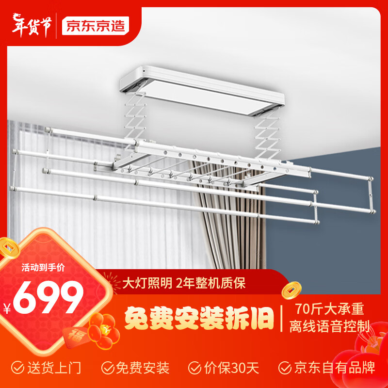 京东京造智能电动晾衣架 阳台晾衣机 声控遥控升降? 伸缩衣杆 大屏照明款价格:1029.00元!