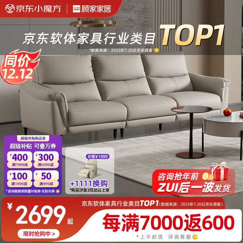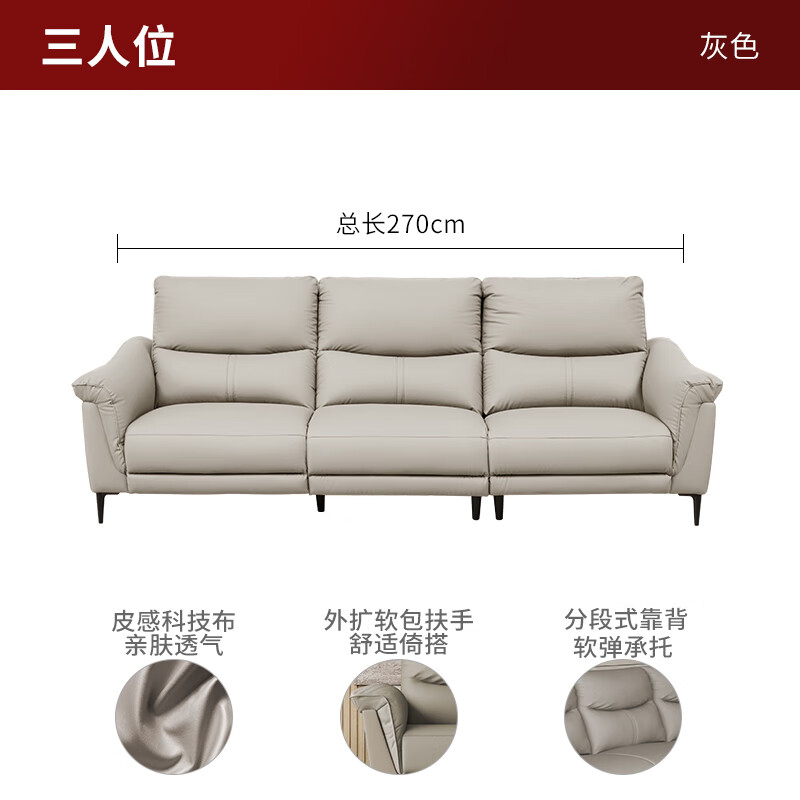 顾家家居(KUKA)现代简约科技布沙发客厅分段靠包2205 【灰色】三人位价格:2699.00元!