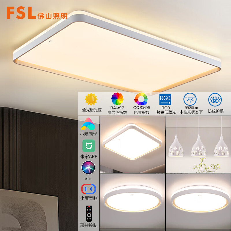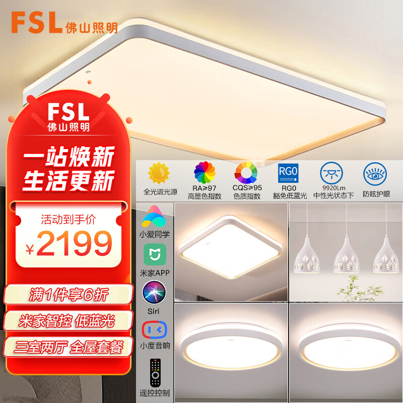FSL佛山照明LED吸顶灯智能灯具套餐客厅灯大尺寸97显低蓝光三室两厅价格:3665.00元!