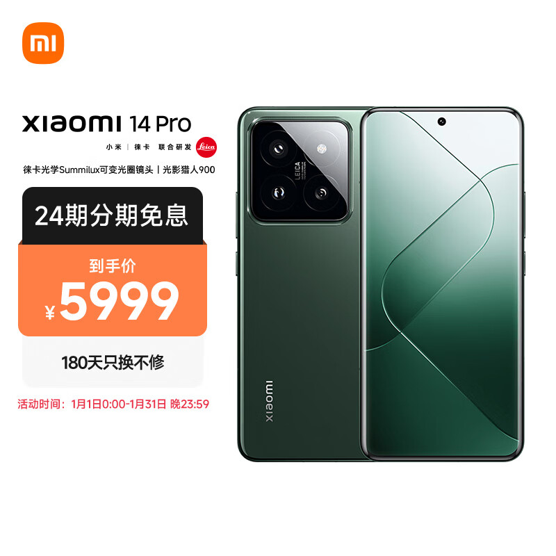 小米14Pro 徕卡可变光圈镜头 光影猎人900 小米澎湃OS 骁龙8Gen3 16+1T 岩石青 小米手机 红米手机 5G价格:5999.00元!