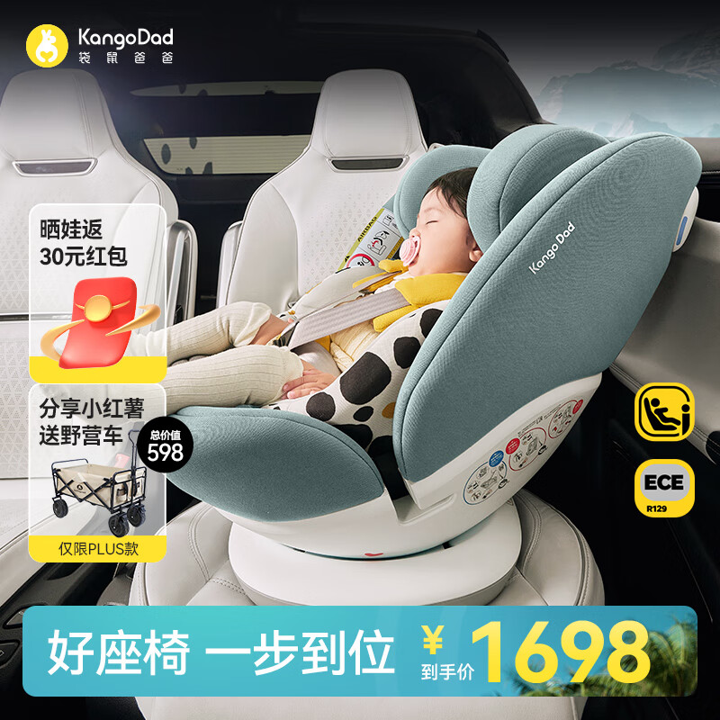 袋鼠爸爸(EURO KIDS)I-SIZE级0-3-12岁360度90度悬停汽车儿童座椅 星途PLUS天青绿价格:1698.00元!