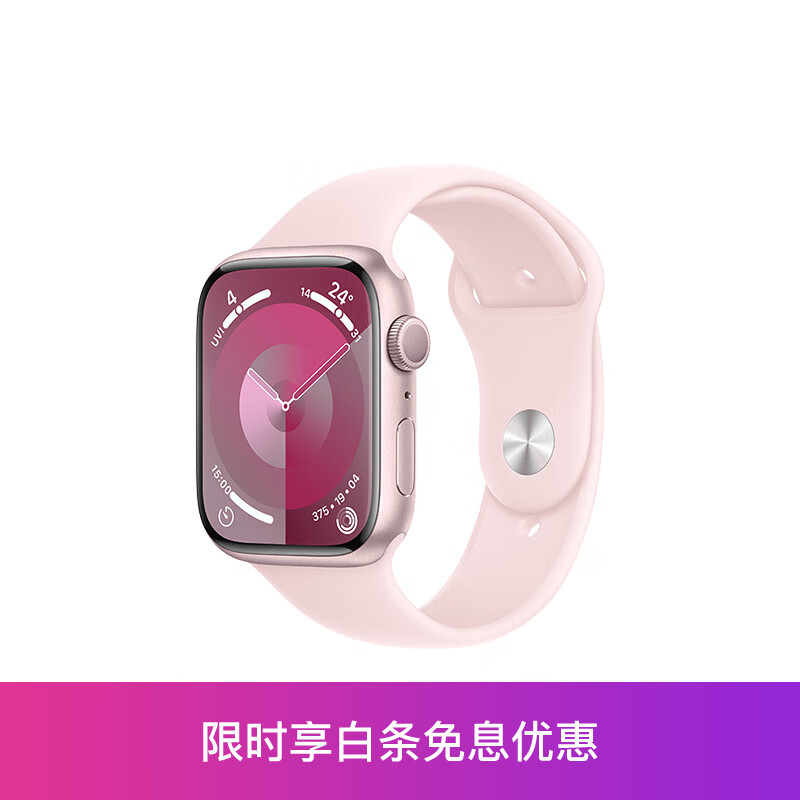 Apple Watch Series 9 智能手表GPS款45毫米粉色铝金属表壳 亮粉色运动型表带S/M S9 MR9G3CH/A【免息版】价格:3199.00元!