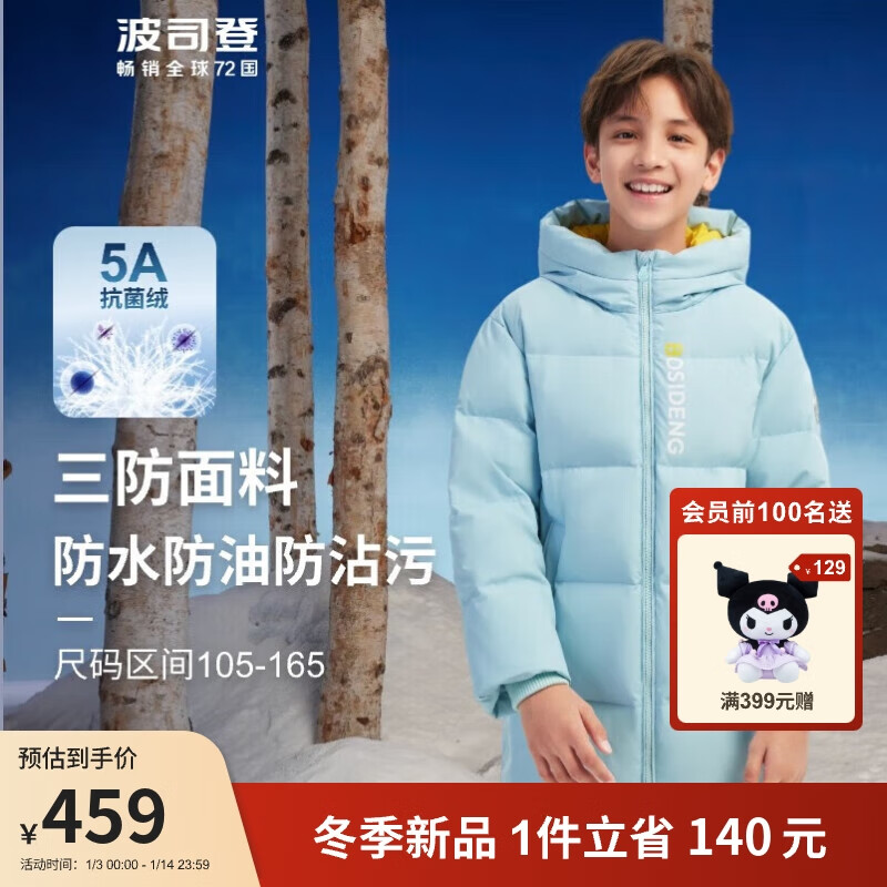 波司登2023新冬季儿童羽绒服男女童中长款科技三防加厚外套T30142560DS价格:599.00元!