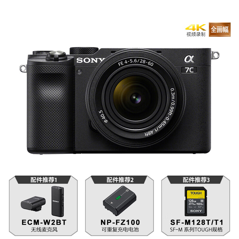 索尼(SONY)Alpha 7CL 全画幅微单数码相机 标准镜头28-60mm套装 轻便小巧 实时眼部对焦 黑色(a7cl)价格:11999.00元!
