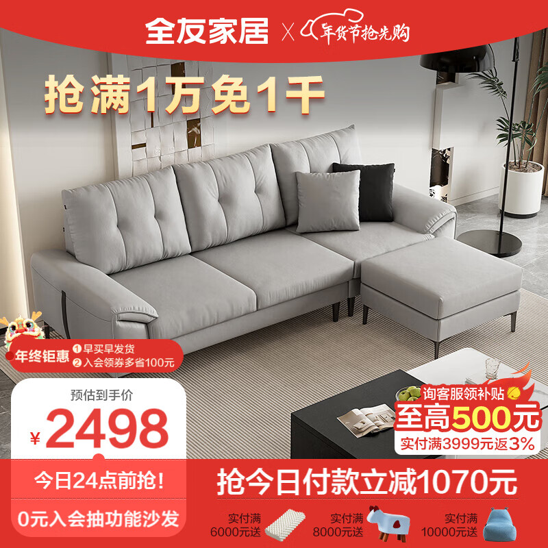 全友家居 沙发简约风科技布沙发客厅中小户型大象耳朵直排座具111037A价格:3568.57元!