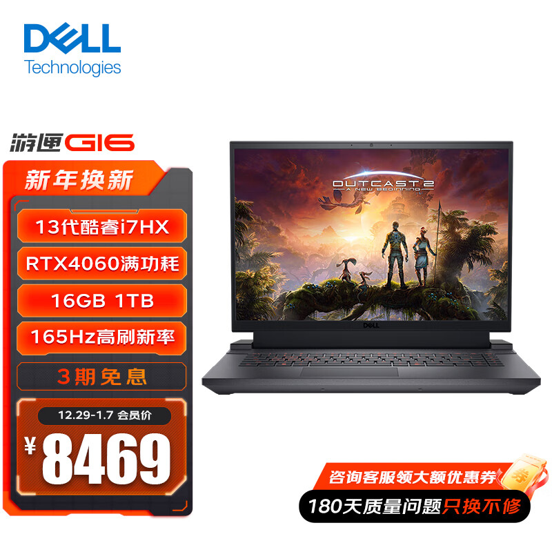 戴尔(DELL)新游匣G16 13代酷睿16英寸大屏游戏本7630笔记本电脑高性能高色域电竞屏 13代酷睿i7/4060/165Hz/黑 官方标配价格:8499.00元!
