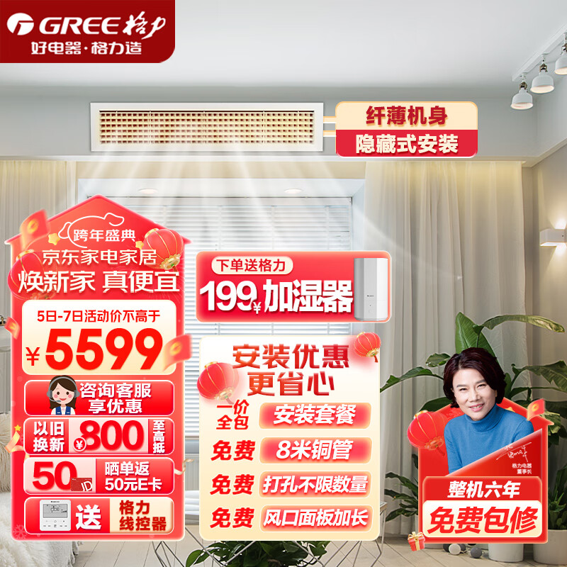 格力(GREE)中央空调 风管机一拖一 大1匹家用嵌入式空调 直流变频FGR2.6Pd/C3Nh-N2 京仓派送(一价全包)价格:5599.00元!