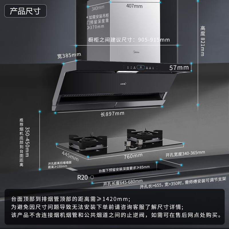 1、这款油烟机和灶台搭配非常好,外观大气。农村也可以上门安装。使用过程噪音小,火力十足,只用手挥就可以控制烟机开关,还有烟机和燃气灶联动功能,真的太棒了,推荐购买