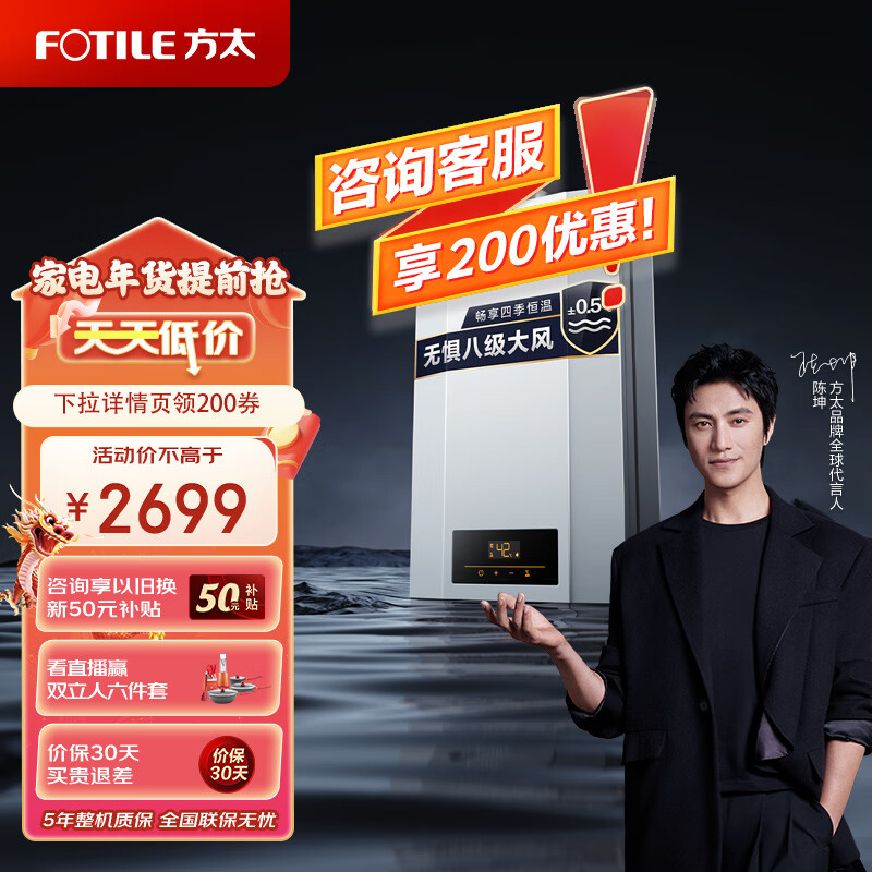 方太天然气16升燃气热水器 家用强排式 四季恒温模式 高层抗风Max系列 多点用水不干扰JSQ30-P16D1价格:2699.00元!