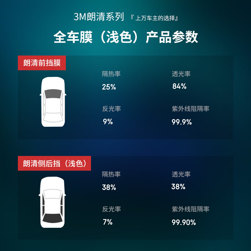 3M 汽车贴膜 朗清系列 浅色SUV全车汽车玻璃车膜太阳膜隔热膜车窗膜价格:2099.00元!