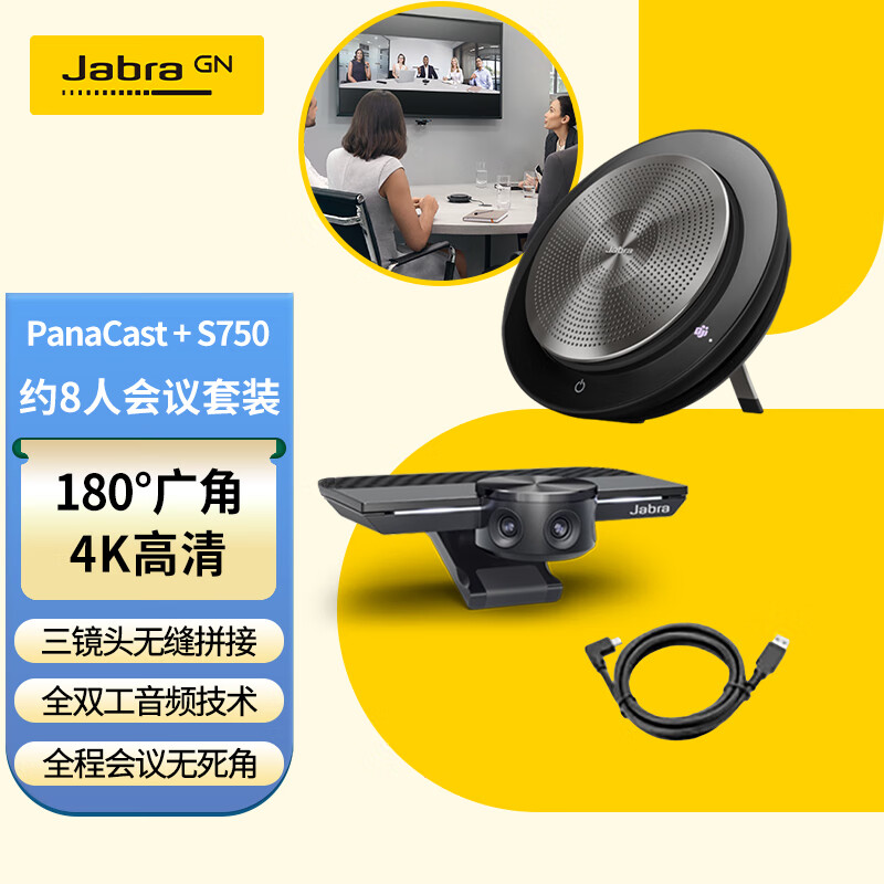 捷波朗(Jabra)小型视频会议网课专用笔记本台式一体机家用教学/PanaCast直播摄像头/Speak 750全向麦克风价格:4880.00元!