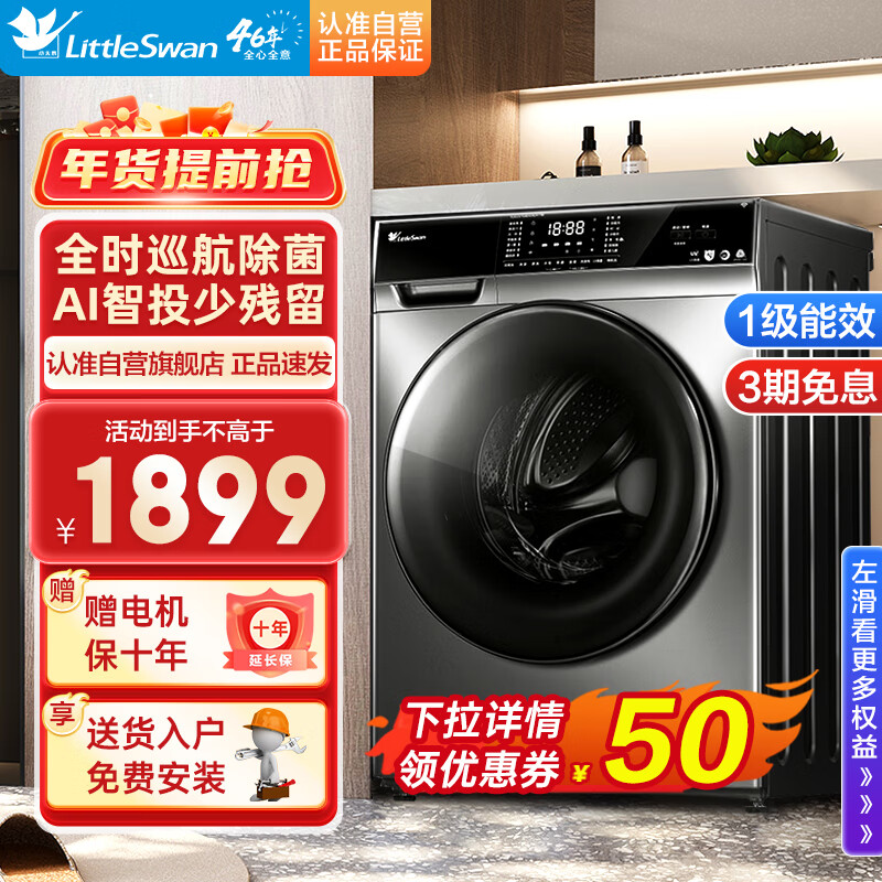 小天鹅(LittleSwan)洗衣机滚筒全自动 智能投放 紫外线除菌 超薄机身 变频电机10公斤大容量TG100VT616WIADY-T1B价格:1899.00元!