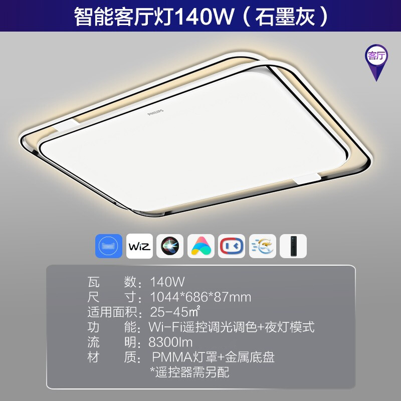 飞利浦悦璃异型吸顶灯140W27-65K 9290032519配置参数: